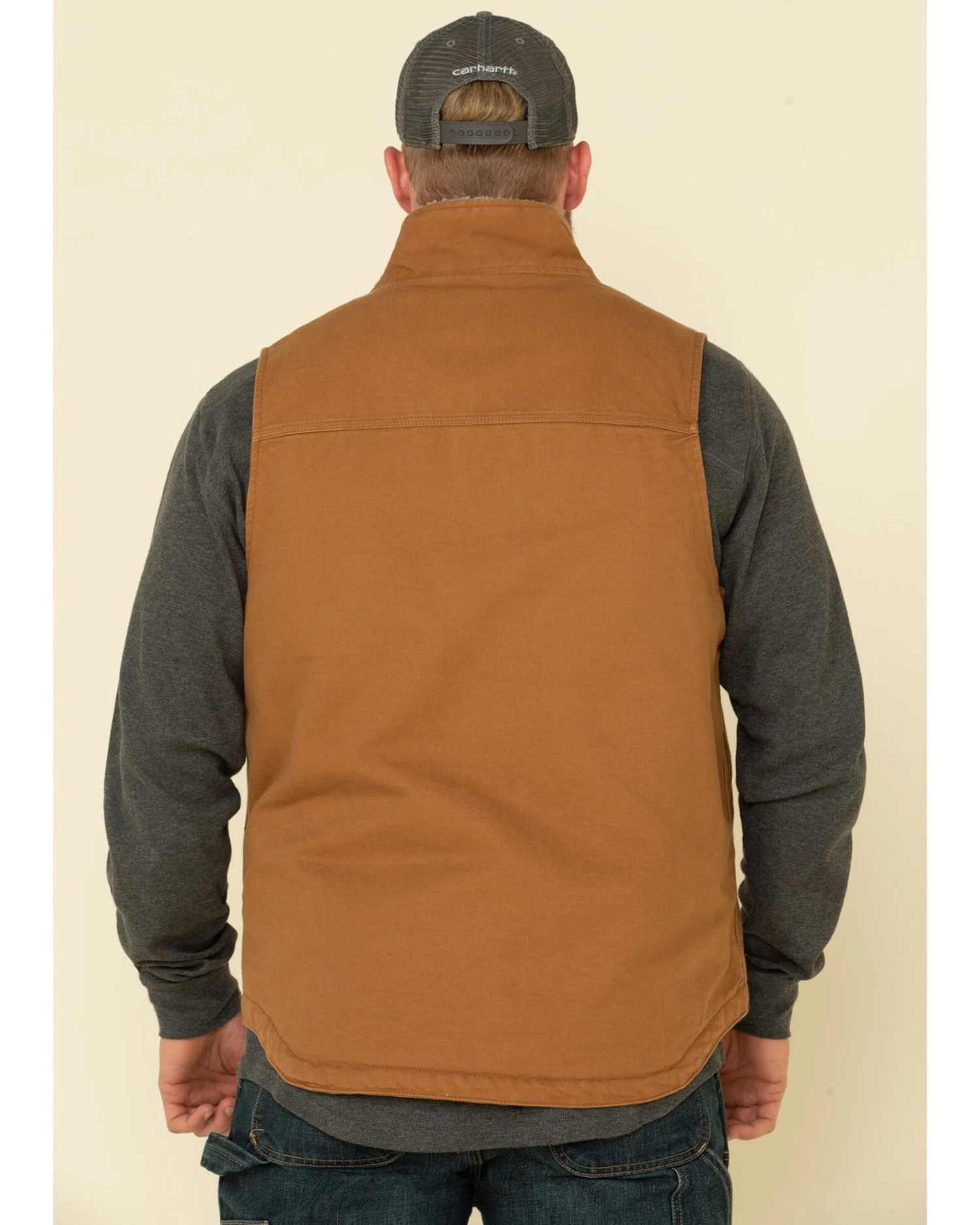 Carhartt Men’s Brown Washed Duck Sherpa Lined Mock Neck Work Vest